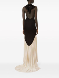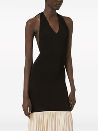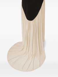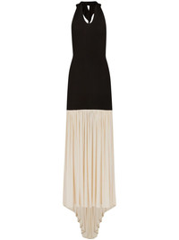 halterneck sleeveless maxi dress Highlights - Black/cream white - Pleat detailing - Backless - Halterneck - Sleeveless - Floor-length - Asymmetric hem Imported Composition Viscose 100% Washing instructions Read Manufacturer Guidelines