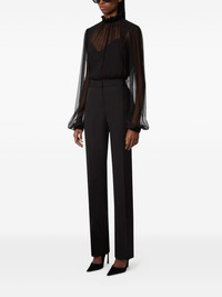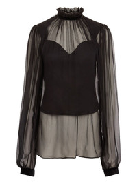 high-neck ruffled top Highlights - Black - Ruffled high neck - Sheer yoke detail - Long sleeves - Balloon sleeves Imported Composition Trims: Cupro 100% Outer: Silk 100% Washing instructions Read Manufacturer Guidelines