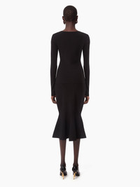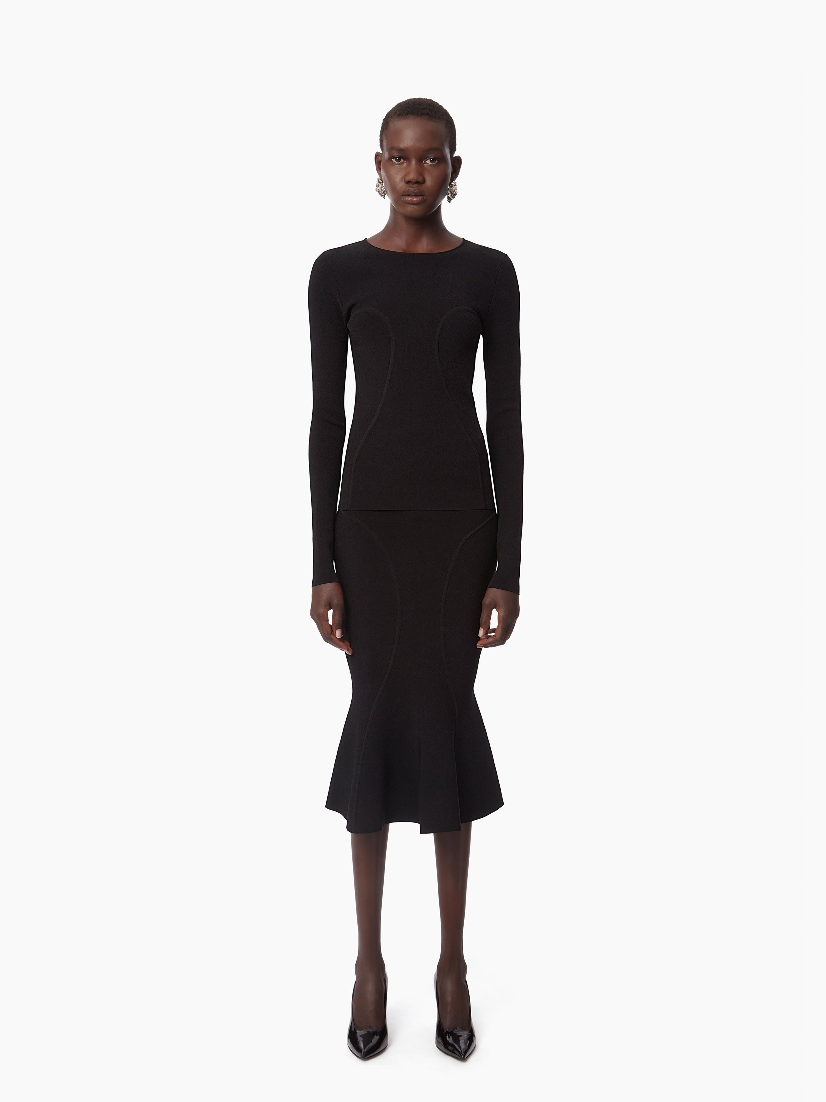 Emblematic of the Nina Ricci silhouette, the mermaid skirt symbolizes femininity. For Fall-Winter 2024, Harris Reed reinterprets it in a fitted knit enhanced by seamed cutlines. Fitted. Take your regular size. COMPOSITION & DETAILS - 83% viscose, 17% Elite. - Fitted mermaid cut. - Maxi length. - High elastic waistband. - Model is 180 cm and wears a size S (FR). - Ref : 24AMJU002ML0558U9000