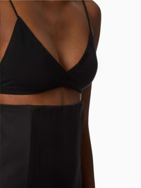 This ultra high-waisted flared pant from the Fall-Winter 2025 collection redefines the silhouette with structure and elegance. Crafted in crisp black wool gabardine, it stands out with its architectural volume and refined minimalism. Designed for a polished look, it’s the perfect eveningwear essential, staying true to Nina Ricci’s signature codes. COMPOSITION & DETAILS - 100% virgin wool. - Defined high waist. - Wide-leg fit. - Side zip fastening. - Model is 178 cm/ 5’10” and wears a size 36 (FR). - Ref: 25ACPA007WV0324U9000