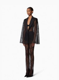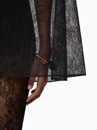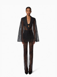 A standout from the Fall-Winter 2025 collection, this black lace cape by Harris Reed channels the elegance of a tailored blazer with its ottoman collar and single contrasting button closure. Lightweight yet impactful, it’s the perfect layer for evening looks. Pair it with the matching pants for a full Nina Ricci silhouette. COMPOSITION & DETAILS - 74% polyamide, 26% viscose. - Flared cut. - Ottoman collar. - Front closure with contrasting button. - Model is 180 cm/ 5ft 11in and wears a size 38 (FR). - Ref : 25ACMA021PA0492U9000