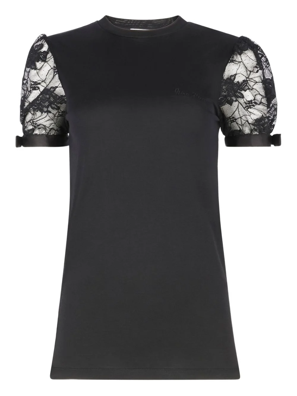 lace-embroidered T-shirt Highlights - Black - Lace-sleeves - Bows-detail - Ribbon-detail - Crew-neck - Short-sleeves Imported Composition Cotton 100%, Polyamide 100%, Fabric 100% Washing instructions Dry Clean Only