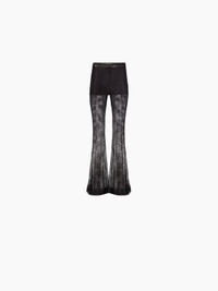 Emblematic of the Nina Ricci silhouette, Harris Reed reinterprets the suit every season. A new addition for the Autumn-Winter 2024 collection, these pants feature a flared cut and chantilly lace, revealing a play of transparency for a chic, tailored look. Paired with a matching lace jacket from the collection, they will enhance your silhouette with a touch of femininity. This style fits true to size. Take your regular size. COMPOSITION & DETAILS - 74% polyamide, 26% viscose. - Fitted cut. - Flared at bottom. - Transparent model. - Lined on top. - Model is 180 cm and wears a size 36 (FR). - Ref : 24ACPA016PA0492U9000