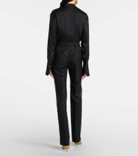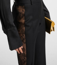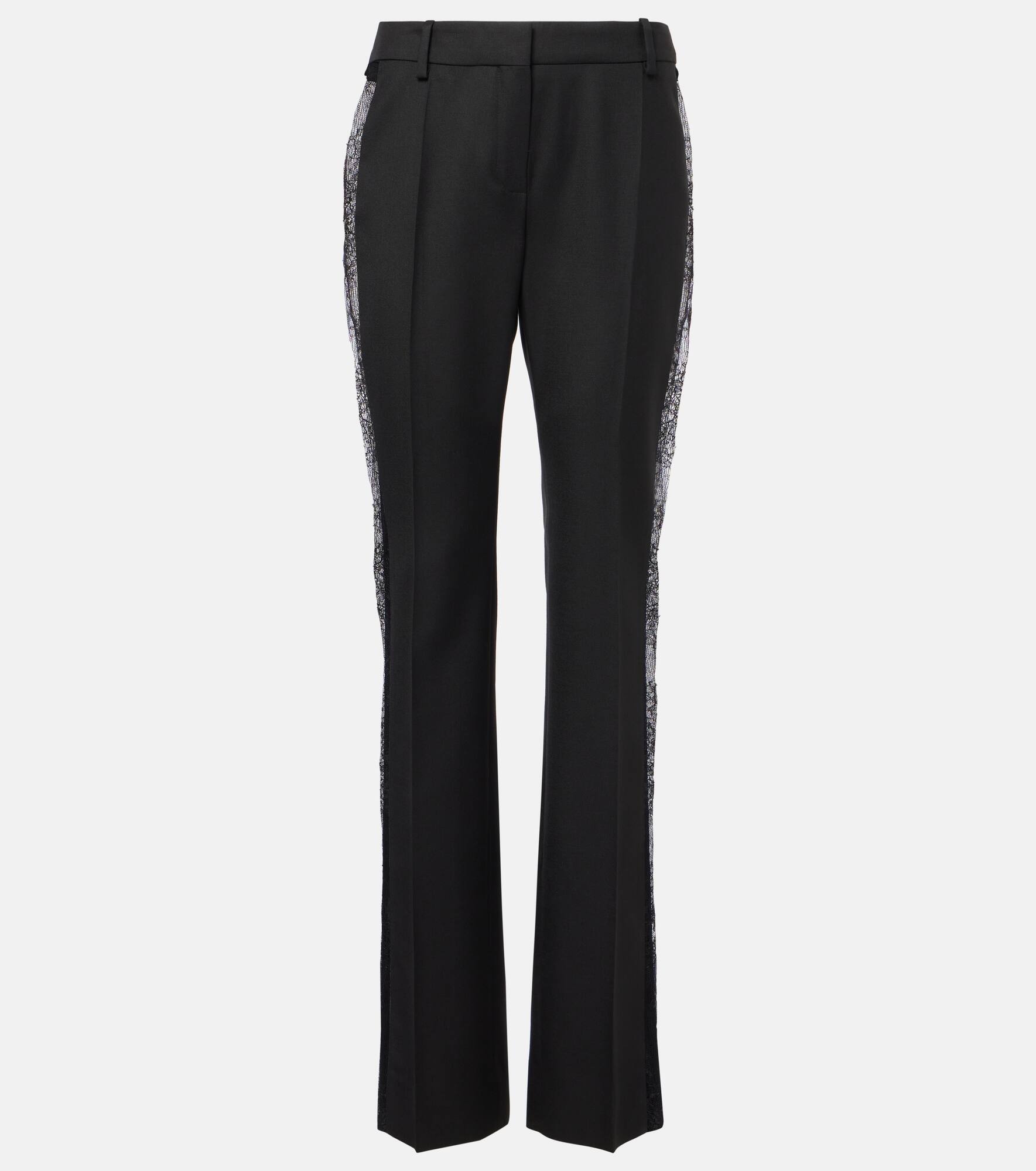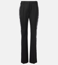 Lace-trimmed wool straight pants