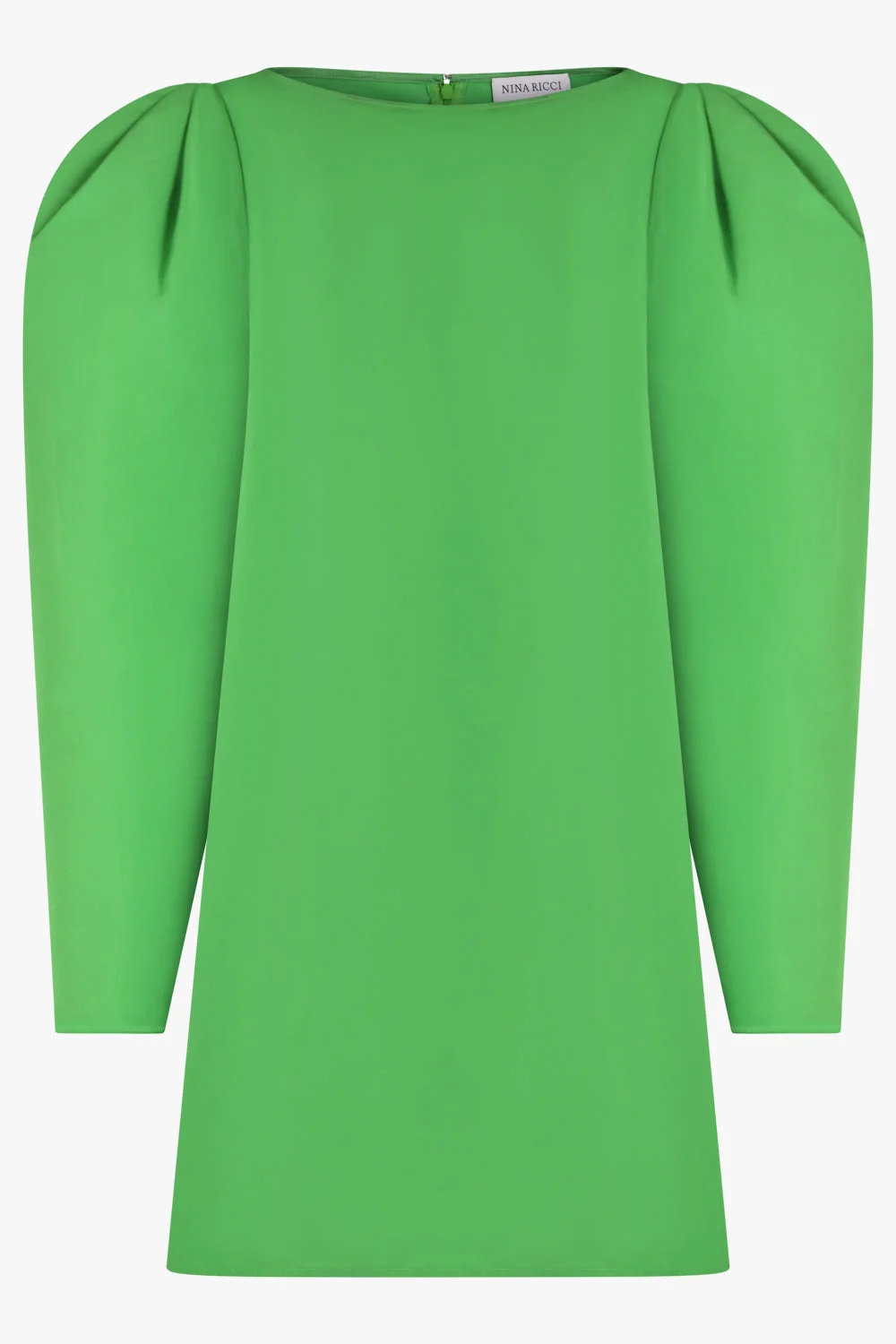 Mini Taffeta Dress With Gathered-sleeves taffeta dress from NINA RICCI featuring Green, taffeta, boat neck, gathered detailing, long puff sleeves, straight hem and thigh-length. Fabrication: 100% Polyester Size and Fit Lacey: Model is 180cm/5’11” and is wearing a size FR36 Model Measurements: Bust: 86cm, Waist: 72cm, Hips 89cm French Sizing Fits true to size Measurements Size 34: Bust 86cm, Waist 92cm, Hip 96cm, Length 85cm Size 36: Bust 88cm, Waist 96cm, Hip 100cm, Length 85cm Size 38: Bust 90cm, Waist 100cm, Hip 104cm, Length 85cm Size 40: Bust 96cm, Waist 104cm, Hip 108cm, Length 85cm