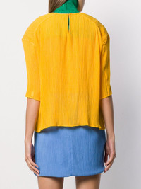 micro-pleated T-shirt Mango yellow cotton micro-pleated T-shirt from Nina Ricci featuring a round neck, short sleeves, a back button fastening, a boxy fit and a straight hem. Imported Composition Cotton 100% SIZE & FIT Model measurements Height 5 ft 10 in(1.78 m) Bust/Chest 34.25 in(87 cm) Hips 35.03 in(89 cm) Waist 26.37 in(67 cm) FittingInformation This piece fits true to size. We recommend you get your regular size Cut for a relaxed fit Washing instructions Dry Clean Only