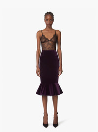 Midi Peplum Velvet Skirt