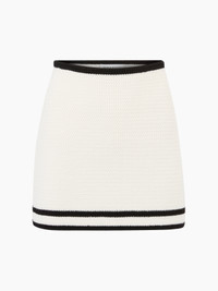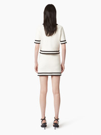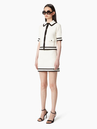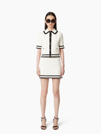 This mini-skirt in cream cotton tweed, a material exclusive to the Spring-Summer 2025 collection, is enhanced by contrasting trims. Perfectly matched with the three-quarter-sleeve cardigan for a total Nina Ricci look, it can also be paired with jeans for a more casual look. COMPOSITION & DETAILS - 100% cotton. - Fitted cut - Contrast trim. - Model is 182 cm and wears a size S. - Ref : 25PMJU002ML0570U1335