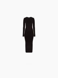 Crafted in a close-fitting knit, this long dress with seam details and plunging halter emphasises the silhouette. Fitted. Take your regular size. COMPOSITION & DETAILS - 83% viscose, 17% Elite. - Close-fitting mermaid cut. - Round collar. - Plunging halter. - Long sleeves. - Maxi length. - Model is 178 cm and wears a size S (FR). - Ref : 24AMRO008ML0558U9000