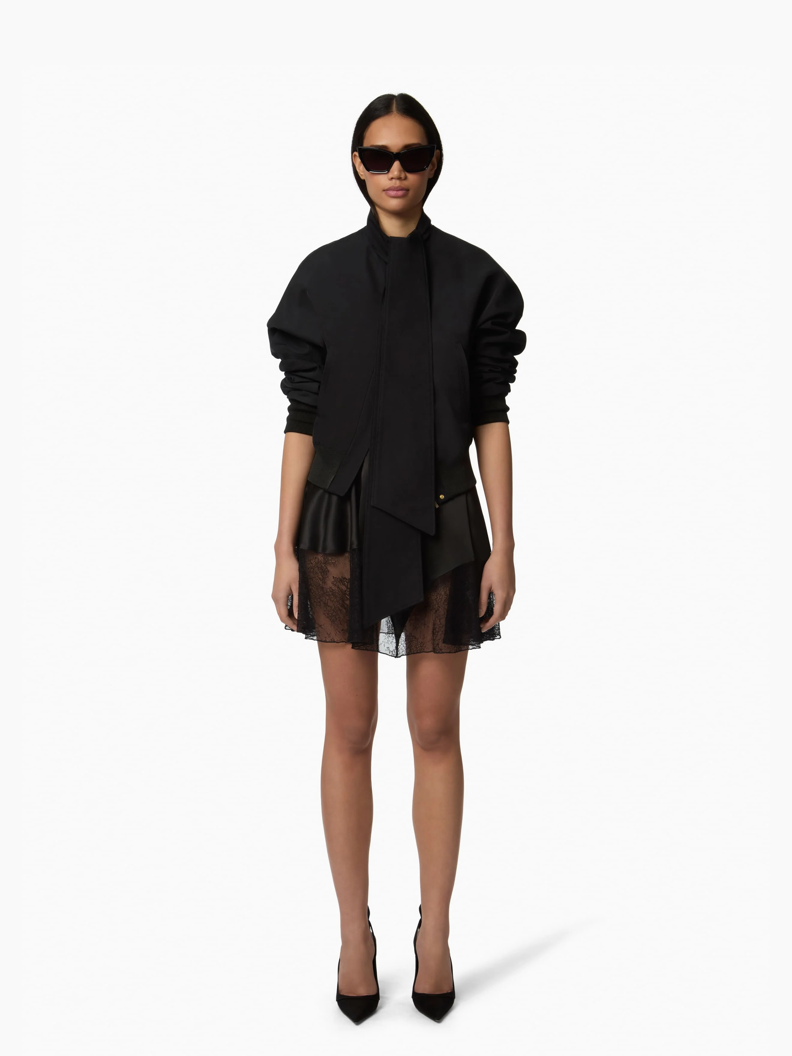 A signature piece of the Nina Ricci wardrobe, the bomber jacket is reimagined for the Fall-Winter 2025 collection in black ottoman cotton. Featuring a built-in scarf and raglan sleeves, it transitions effortlessly from polished to laid-back looks. COMPOSITION & DETAILS - 50% organic cotton, 50% viscose. - Short, fitted cut. - Raglan sleeves. - Ribbed cuffs and hem. - 2 raglan pockets. - Model is 178 cm/ 5ft 10in and wears a size 38 (FR). - Ref : 25ACVE009CO1099U9000
