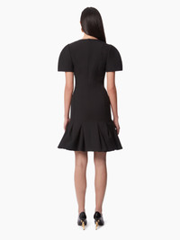 For this Fall Winter 2024 collection, the midi dress is revisited by Harris Reed. Crafted in wool gabardine, it features short drop sleeves, a pleated flared hemline, and Nina Ricci's signature neckline. Suitable for both formal and casual wear. If you are between 2 sizes, take 1 size up. COMPOSITION & DETAILS 100% ethical virgin wool gabardine. - Fitted cut. - Midi length. - Sweetheart neckline. - Short sleeves. - Low armholes. - Ruffled bottom. - Back zip closure. - Model is 178 cm and wears a size 36 (FR). - Ref : 24ACRO047WV0322U3376