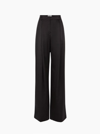 Emblematic of the Nina Ricci silhouette, the suit symbolizes timeless elegance. Harris Reed adapts and reinterprets it each season in a variety of styles. Crafted in fluid black stretch satin, these pants are enhanced by a straight cut and a pleat along the leg for a unique fall. Paired with a tailored jacket from the collection, they'll stand out for a total Nina Ricci look. COMPOSITION & DETAILS - 52% viscose, 37% silk, 11% elastane. - High waistband. - Belt loops. - Concealed closure. - Model is 182 cm and wears a size 36 (FR). - Ref : 25PCPA002VI0530U9000