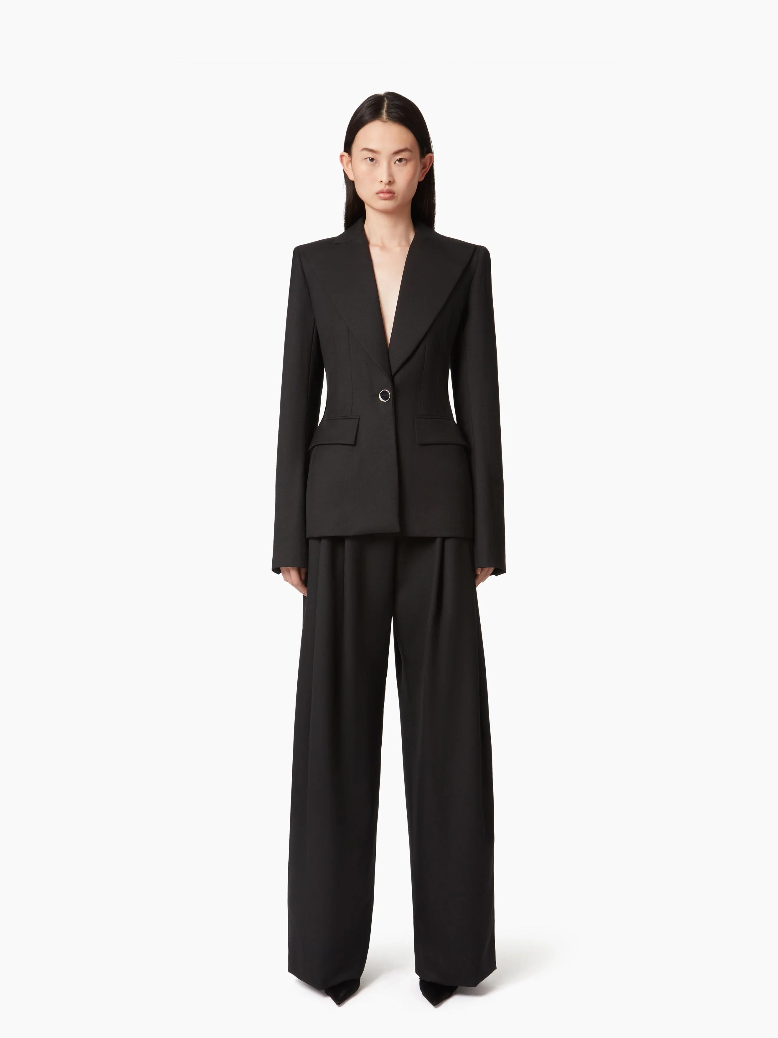 Emblematic of the Nina Ricci silhouette, the suit symbolizes timeless elegance. Harris Reed adapts and reinterprets it each season in a variety of styles. Crafted in black virgin wool gabardine, these pants are enhanced by a straight cut and a pleat along the leg for a unique fit. Paired with a tailored jacket from the collection, they'll stand out for a total Nina Ricci look. COMPOSITION & DETAILS - 100% ethical virgin wool. - High waist. - Belt loops. - Concealed closure. - Model is 182 cm and wears a size 36 (FR). - Ref : 25PCPA002WV0322U9000