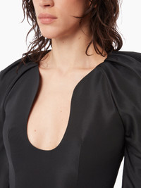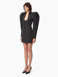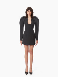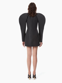 Emblematic of Nina Ricci collections, this taffeta dress with cocoon sleeves and heart-shaped neckline recalls the Maison's codes for a refined look, the identity of our signature style. Fitted and stiff shape. If you have a large bust or if you are over 1m78 tall, take 1 size up. COMPOSITION & DETAILS - 100% recycled polyester. - Slim fit. - Mini length. - Heart-shaped neckline. - Long cocoon sleeves. - Invisible zip fastening at back. - Model is 181 cm and wears a size 36 (FR). - Ref : 24ACRO036PL0440U9000