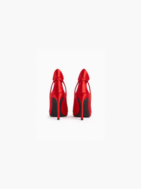 For the Fall-Winter 2025 collection, Harris Reed reintroduces these vivid red satin pumps. The heel is elegantly wrapped in openwork detailing that echoes the shape of a bow—a signature motif of Maison Nina Ricci. Designed to elevate every silhouette of the season, these pumps add a boldly feminine finishing touch. COMPOSITION & DETAILS - 72% viscose, 28% silk. - Satin upper. - 110mm heel. - Available in 5 sizes. - If you are between two sizes, choose the smaller one. - Ref: 25ACC0057SAT009U2136