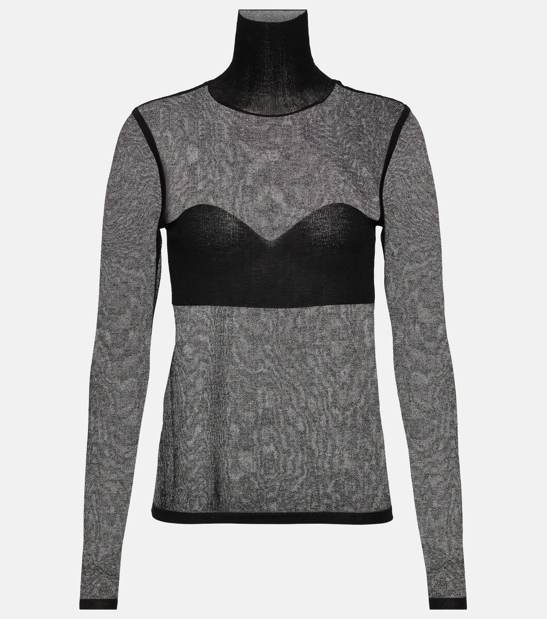 Characterized by fine details and flattering silhouettes, Nina Ricci’s designs possess seasonless appeal. This turtleneck top is defined by its fully-sheer, knitted form which is intercepted by an inner panel around the chest. Product Details - Made in China - Material: 23% polyester, 77% viscose - Care instructions: dry clean - Designer color name: Black - Item number: P00843003 Size & Fit - True to size - Sheer - Fitted - Lightweight material - Falls to the hip - The model seen in the picture is 178cm-5'10" and wearing a size XS