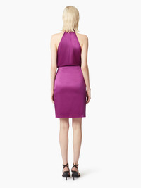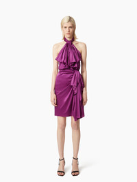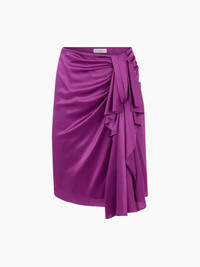 This high-waisted skirt in vibrant fuchsia stretch satin features draping and an asymmetrical bow, adding an elegant, sophisticated touch. COMPOSITION & DETAILS - 52% viscose, 37% silk, 11% elastane. - High waist. - Midi length. - Bow detail on front. - Model is 181 cm and wears a size 36 (FR). - Ref : 25PCJU022VI0530U3181