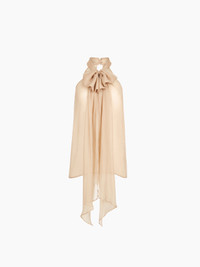 This taupe halterneck top in crinkled silk muslin enchants with its weightless elegance and bold silhouette. It’s elevated by a long lavalliere scarf that can be tied or left to flow freely. The open back reveals the body with subtle sensuality, making it the perfect choice for an evening look with understated charm and confidence. COMPOSITION & DETAILS - 100% silk. - Regular fit. - Lavalliere. - Open back. - Closes at the back with two concealed buttons. - Model is 178 cm/ 5ft 10in and wears a size 34 (FR). - Ref: 25ACTO034SE1400U7524