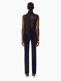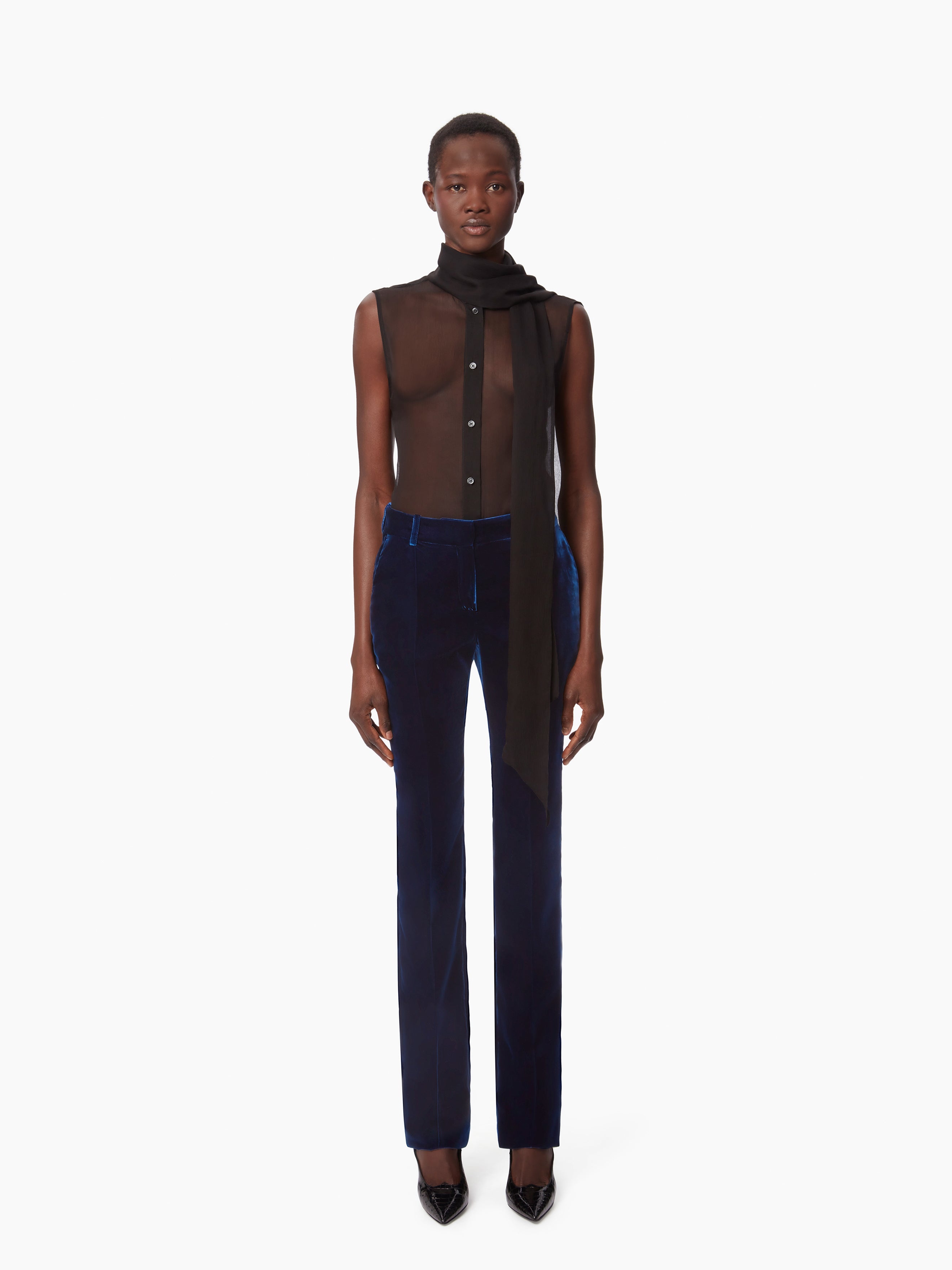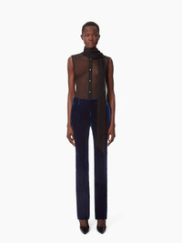 Emblematic of the Nina Ricci silhouette, Harris Reed adapts and reinterprets the suit each season. New for the Autumn-Winter 2024 collection, these pants feature a straight cut and are fabricated in vibrant, fluid velvet, ideal for a dressed up look. Paired with a tailored jacket from the collection, they will complete a silhouette signed by Nina Ricci. This style fits true to size. Take your regular size. COMPOSITION & DETAILS - 50% rayon, 50% cupro. - Straight cut. - 2 in-seam pockets. - Model is 180 cm and wears a size 36 (FR). - Ref : 24ACPA004RA0044U4655