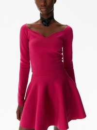 sweetheart-neck long-sleeve top