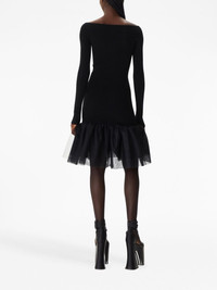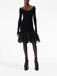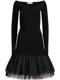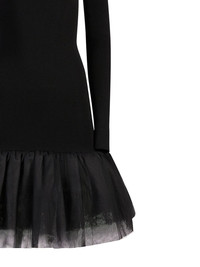 sweetheart-neck tulle-panel dress Highlights - Black - Wool blend - Stretch-design - Knitted construction - Tulle panels - Sweetheart neck - Long sleeves - Flared skirt - Above-knee length Imported Composition Wool 90%, Polyamide 9%, Spandex/Elastane 1%