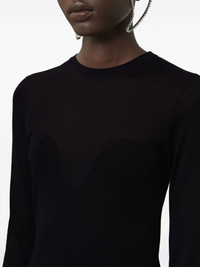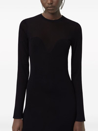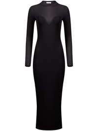 textured semi-sheer midi dress Highlights - Black - Stretch-design - Textured finish - Semi-sheer construction - Crew neck - Sweetheart neck - Concealed rear fastening - Long sleeves - Straight hem - Mid-calf length Imported Composition Viscose 100% Washing instructions Read Manufacturer Guidelines