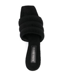 towelling square-toe sandals Highlights - Black - Cotton blend/leather - Towelling finish - Quilted panels - Square toe - Open toe - Branded footbed - Slip-on style - Signature snorkel heel Made in Italy Composition Cotton 100% SIZE & FIT Measurement HEEL 4.33 in(11 cm) Sole height 0.39 in(1 cm)