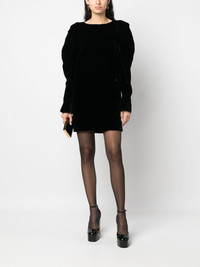velvet mini dress Nina Ricci's glamorous style is shown in this mini-black dress from the brand's AW23 collection. Boasting a classic straight cut, the piece is enhanced by a velvet finish. Highlights - Black - Velvet finish - Round neck - Long sleeves - Straight hem - Concealed rear zip fastening Imported Composition Outer: Viscose 50%, Cupro 50% Lining: Viscose 100% SIZE & FIT Model measurements Height 5 ft 10 in(1.79 m) Bust/Chest 33.07 in(84 cm) Hips 35.82 in(91 cm) Waist 24.01 in(61 cm) Measurement HIPS 39.37 in(100 cm) LENGTH 34.25 in(87 cm) WAIST 36.22 in(92 cm) FittingInformation Designed for a slim fit that sits just away from the body offering a close yet comfortable fit Made from a midweight non-stretch fabric This piece fits true to size – take your usual size