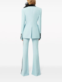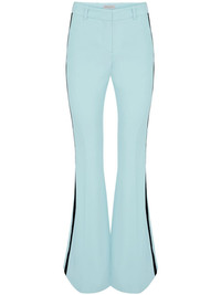 velvet-trim flared trousers Highlights - Light blue - Cady texture - Velvet trim - Mid-rise - Belt loops - Concealed front fastening - Flared Imported Composition Outer: Acetate 74%, Viscose 26% Lining: Viscose 100% SIZE & FIT Measurement FRONT RISE 10.62 in(27 cm) INSIDE LEG 32.28 in(82 cm) HIPS 37 in(94 cm) WAIST 31.49 in(80 cm) Washing instructions Read Manufacturer Guidelines
