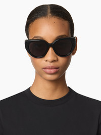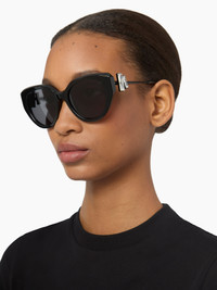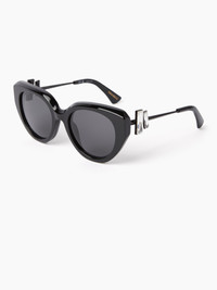 Presented during the SS25 fashion show, these timeless feminine acetate sunglasses feature a faceted front and sleek geometric temples. The iconic Nina Ricci gros-grain detail lines the inside, with a subtle logo on the left temple.