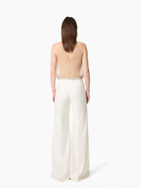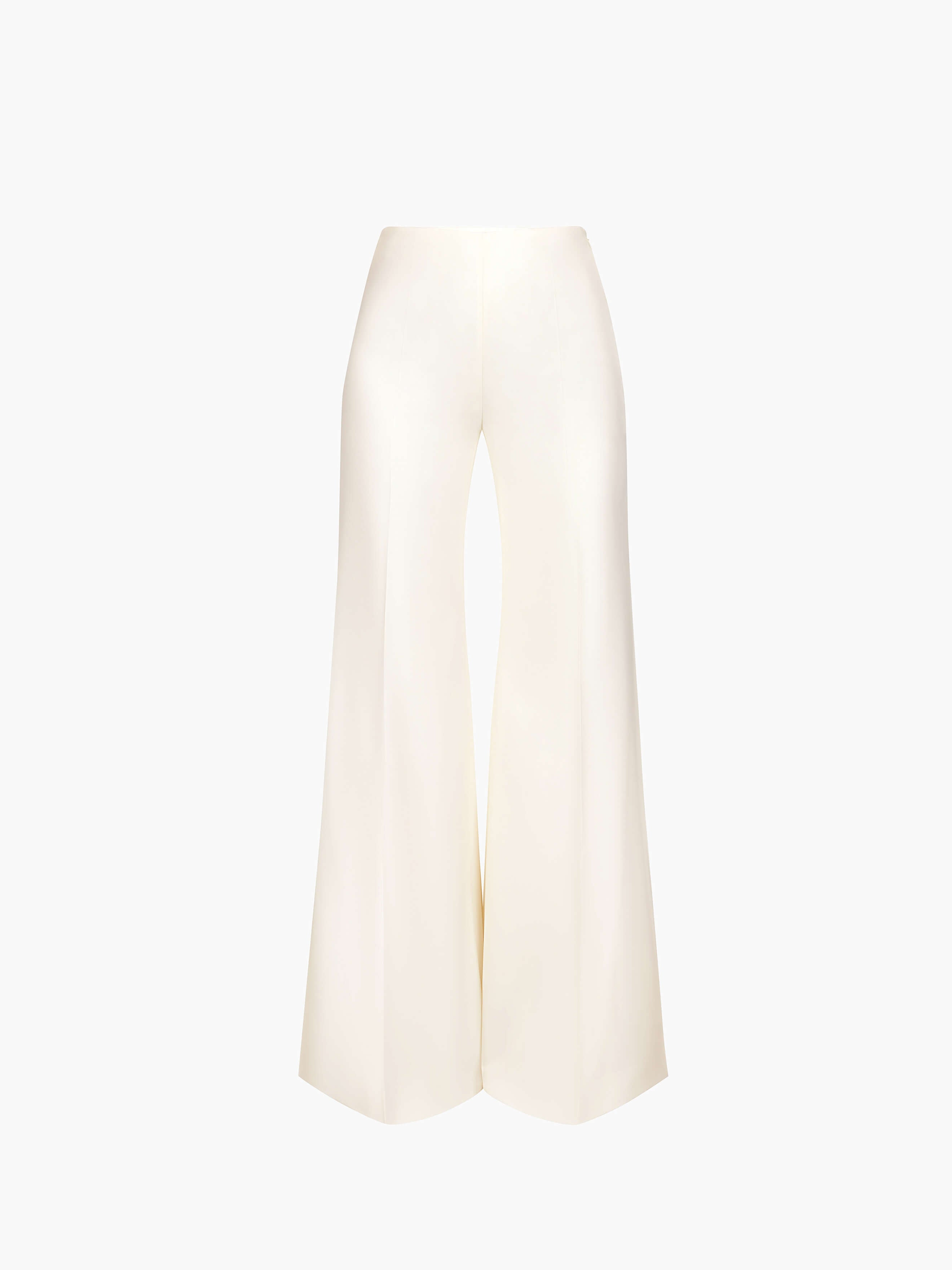 This flared pant in cream wool gabardine stands out for its fluid lines and natural elegance. Fitted at the waist, it subtly flares out to the hem, creating a long, lean, and versatile silhouette. Whether styled in a polished or relaxed way, it offers a modern, confident attitude. A key piece in the Fall-Winter 2025 collection, it reflects Nina Ricci’s couture heritage with effortless sophistication. COMPOSITION & DETAILS - 100% virgin wool. - Wide-leg fit. - No waistband. - Side zip fastening. - No pockets. - Model is 180 cm/ 5ft 11in and wears a size 36 (FR). - Ref: 25ACPA027WV0324U1230