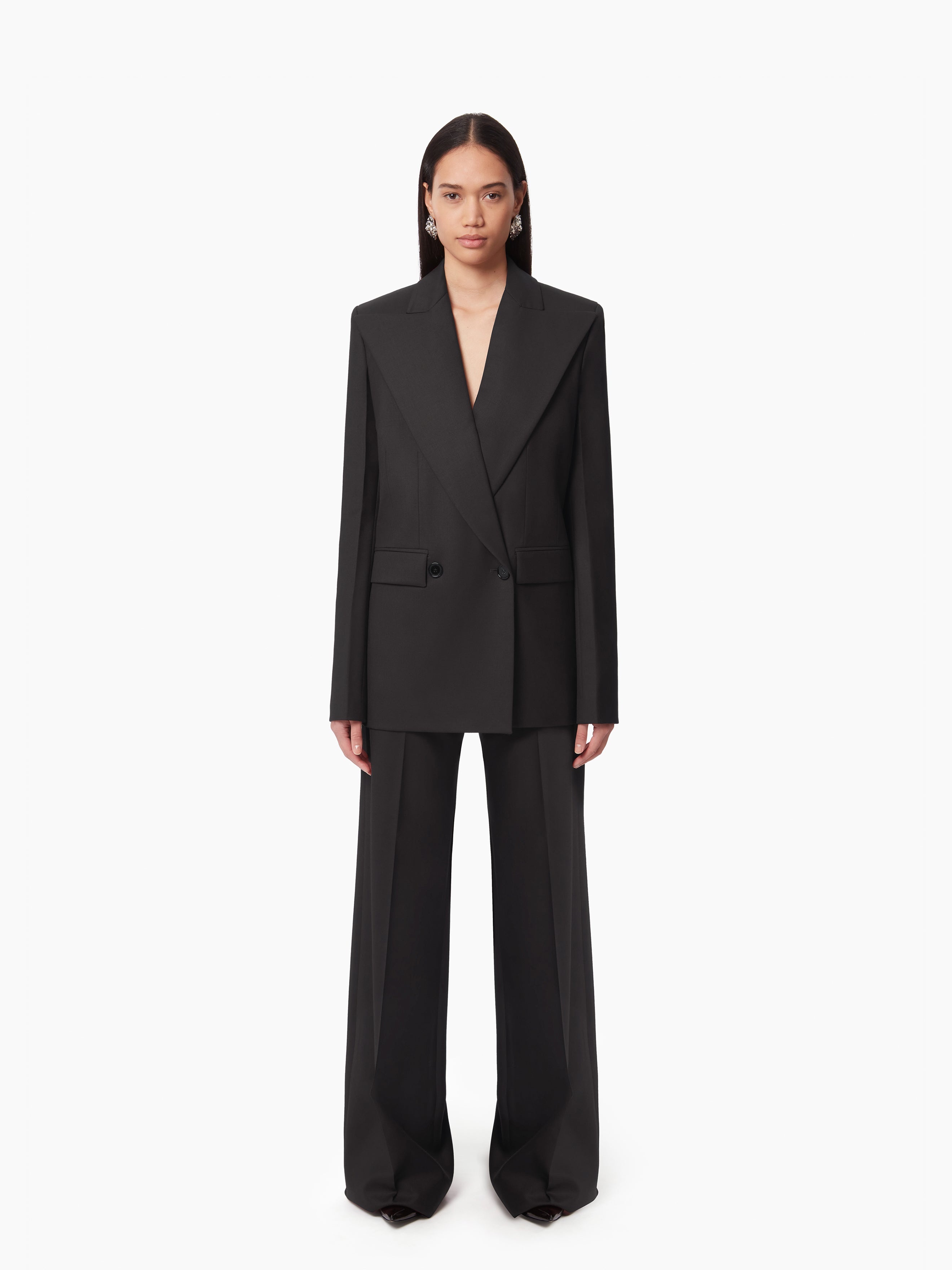 Emblematic of the silhouette imagined by Harris Reed, the suit is a Nina Ricci timeless, reinterpreted each season. Crafted in wool gabardine, these pants feature a wide leg cut and a pleat along the leg for a chic finish. Paired with a tailored jacket from the collection, they will complete a Nina Ricci silhouette. This style fits true to size. Take your regular size. COMPOSITION & DETAILS - 100% ethical virgin wool. - Large fit. - Model is 178 cm and wears a size 36 (FR). - Ref : 24ACPA005WV0322U9000