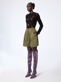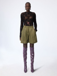 These wrinkled cotton shorts feature a wide, architectural cut that sits high on the waist. The crisp texture enhances the garment’s sculptural volume, while the structured waistband and pleats bring tailoring precision to this relaxed silhouette. COMPOSITION & DETAILS - 61% cotton 30% polyamide 9% metal. - Model is 180 cm/ 5ft 11in and wears size 38 (FR). - Ref: 26PCPA009CO1109U8228