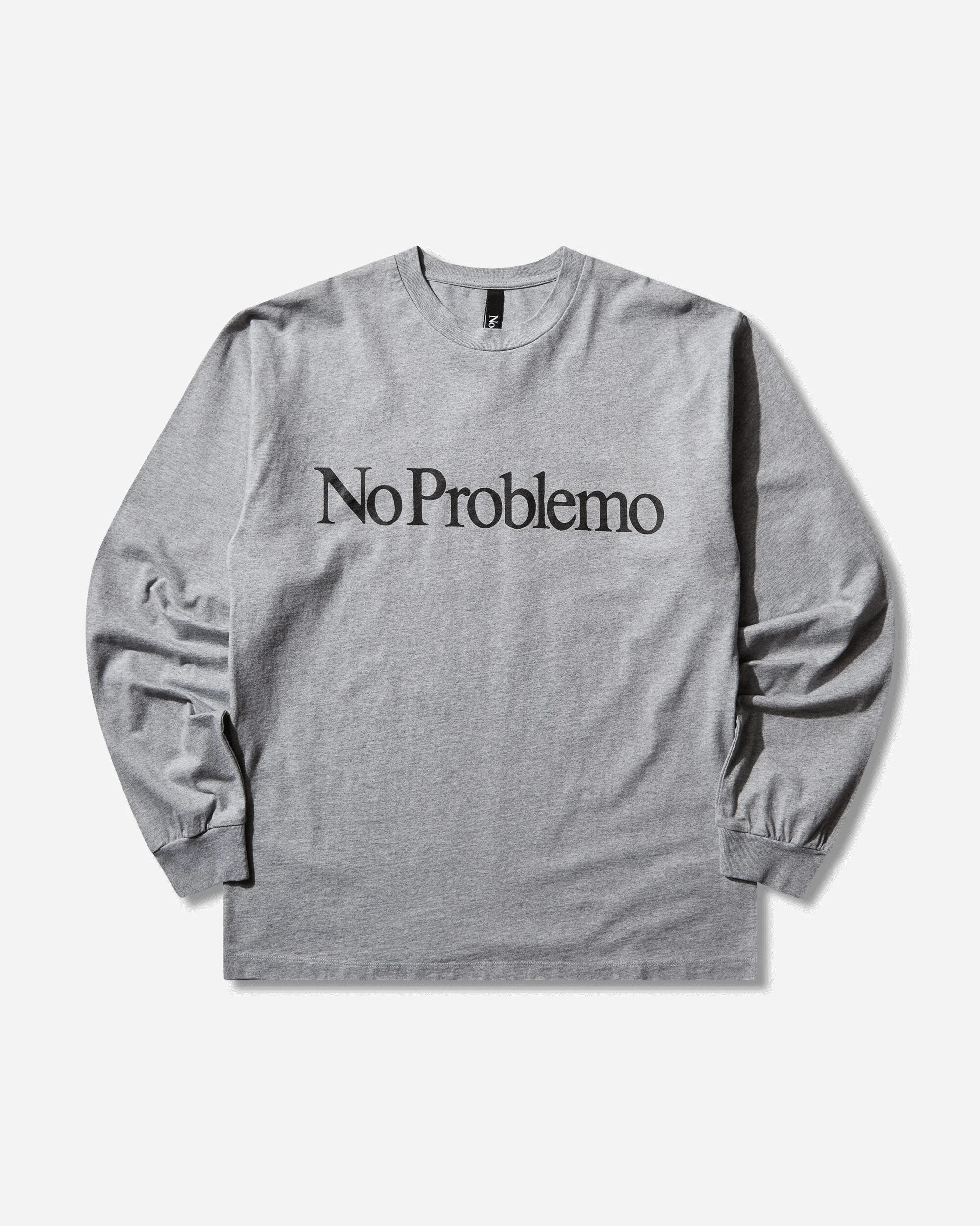 No Problemo Logo Longsleeve T-Shirt Grey Marl Unisex long sleeve t-shirt made from 100% Cotton, mid-weight jersey. Featuring a classic 'Wrapped' graphic screen printed on the front. - 100% Cotton - Regular Fit - Ribbed Collar - Graphic Printed at Front - Style Code: NP6002205 GREYMARL