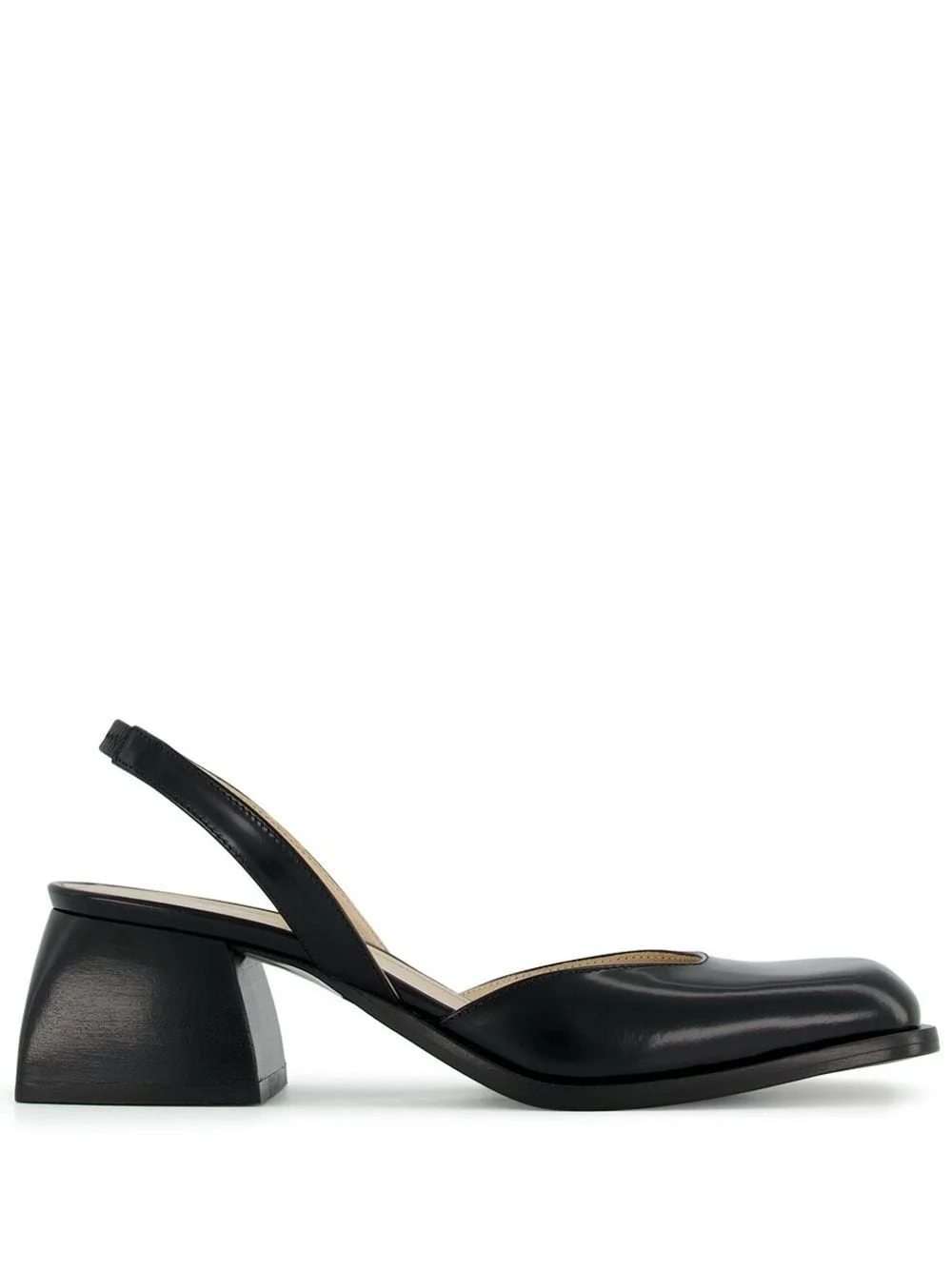 Bulla Jones 45mm leather pumps Made in Italy from leather, Nodaleto's Bulla Jones pumps are inspired by Corbusier’s LC4 armchair’s aesthetic – the pair enhances the arching of the feet. The glassy finish and the rounded lines of its square toe add a twist to the silhouette, while the block heel plays the rougher touch. Highlights - Black - Leather - Branded footbed - Square toe - Elasticated slingback strap - Slip-on style - 45mm block heel Made in Italy Composition Lining: Leather 100% Outer: Leather 100% Sole: Leather 100% SIZE & FIT Measurement HEEL 1.77 in(4.5 cm) Washing instructions Read Manufacturer Guidelines