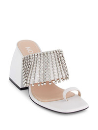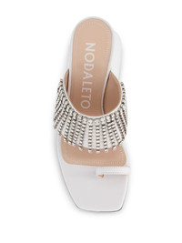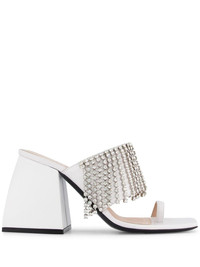Bulla Preston 90mm sandals These Bulla Preston mules from Nodaleto are the product of ‘passionate imagination and an impulse of self expression’. Grounded on a 90mm block heel, they’re overlaid with cascading crystal embellishments. Highlights - White - Nappa leather - Crystal embellishment - Single toe strap - Slip-on style - Mid block heel Made in Italy Composition Lining: Goat Skin 100% Cubic Zirconia 100% Outer: Nappa Leather 100% Sole: Leather 100% SIZE & FIT Measurement HEEL 3.54 in(9 cm)