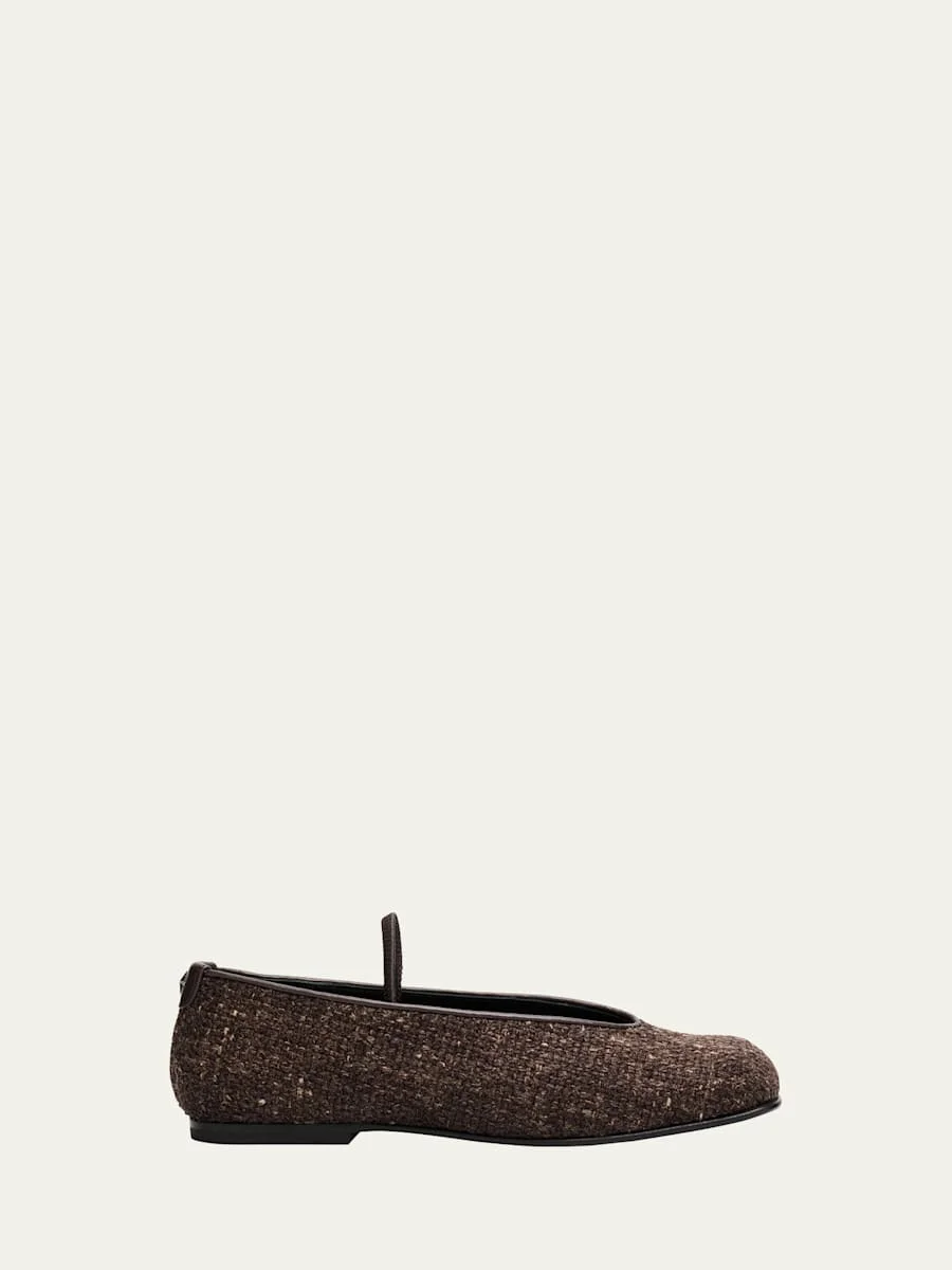 Nodaleto "Cindy" ballerina flats in wool tweed with tonal calf leather trim Flat heel Square toe Elastic Mary Jane strap Slip-on style Leather lining Leather/Rubber outsole Made in Italy Online Inquiries: BGS21_X6YZV| Store Inquiries: #5064621