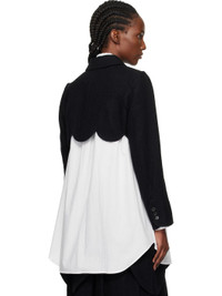 Brushed woven wool jacket. · Modified notched lapel · Floral-shaped panel at front · Rounded seams at shoulders and cuffs · Scalloped hem · Full satin lining Supplier color: Black Body: 100% wool. Lining: 100% cupro. Made in Japan 252672F063002