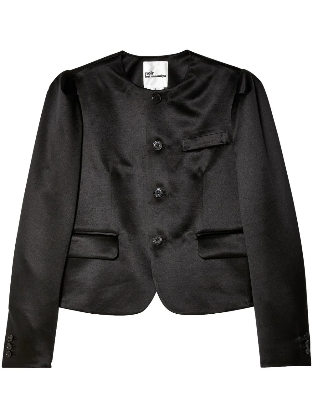 button-up cropped jacket Highlights - Black - Wool-silk blend - Rounded collar - Front button fastening - Long sleeves - Buttoned cuffs - Chest welt pocket - Two front flap pockets - Cropped - Straight hem Imported Composition Wool 50%, Silk 50% Washing instructions Read Manufacturer Guidelines