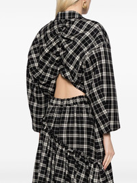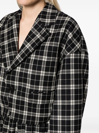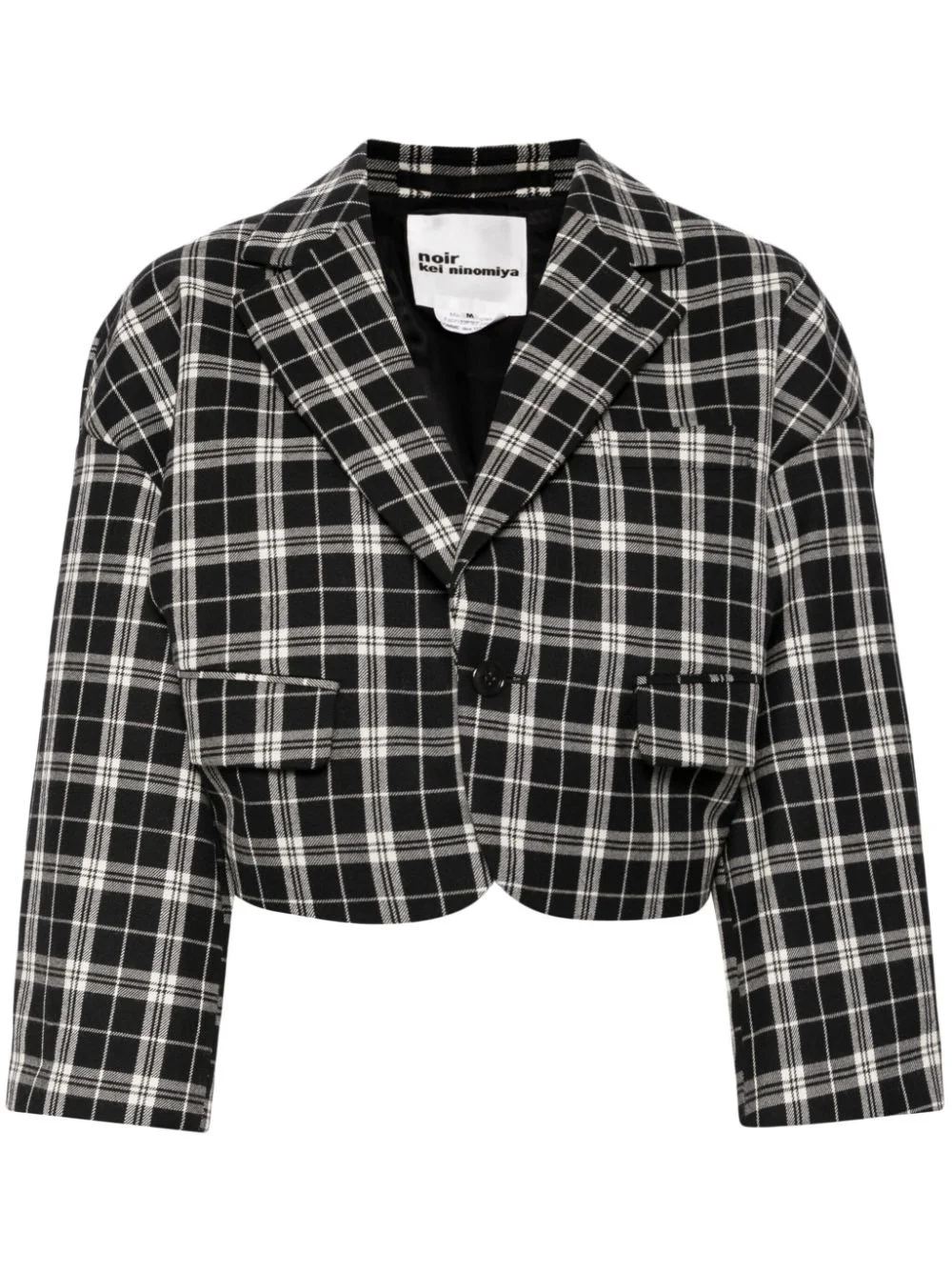 checked cropped blazer black/white wool plaid check pattern front button fastening cinch detailing notched lapels crop sleeves chest welt pocket two front flap pockets internal pocket full lining cropped Imported Composition Outer: Wool 100% Lining: Cupro 100% SIZE & FIT Model measurements Height 5 ft 10 in(1.77 m) Bust/Chest 27.95 in(71 cm) Hips 34.64 in(88 cm) Waist 22.83 in(58 cm) FittingInformation Designed for a boxy fit, intended for a loose fit throughout Made from a padded non-stretch fabric, giving it no natural elasticity