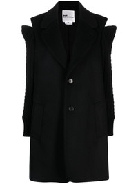 cold-shoulder single-breasted coat Highlights - Black - Wool blend - Felted finish - Notched lapels - Front button fastening - Cold-shoulder design - Knitted long sleeves - Ribbed cuffs - Two side welt pockets - Two internal welt pockets - Central rear vent - Straight hem - Full lining Imported Composition Outer: Wool 83%, Nylon 11%, Cashmere 6% Lining: Cupro 100% SIZE & FIT Model measurements Height 5 ft 10 in(1.78 m) Bust/Chest 32.67 in(83 cm) Hips 35.43 in(90 cm) Waist 23.22 in(59 cm) FittingInformation Designed to be unstructured, offering a loose fit throughout The vented hem offers movement at the rear Made from a midweight non-stretch fabric This piece fits true to size – take your usual size