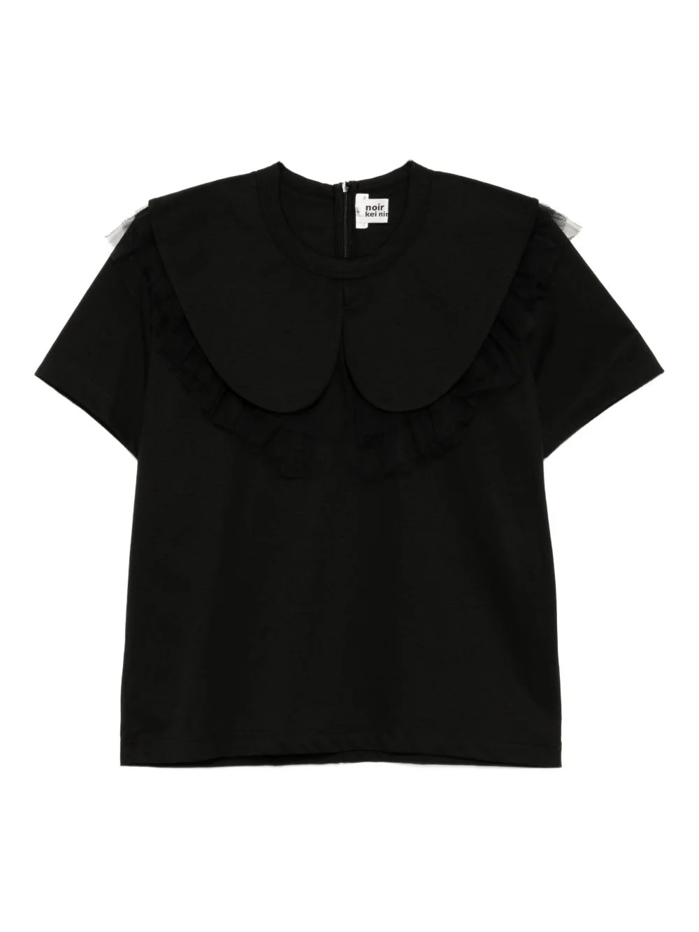 ruffled-lace top Highlights - Black - Rear zip fastening - Crew neck - Short sleeves Imported Composition Cotton 100% Washing instructions Hand Wash