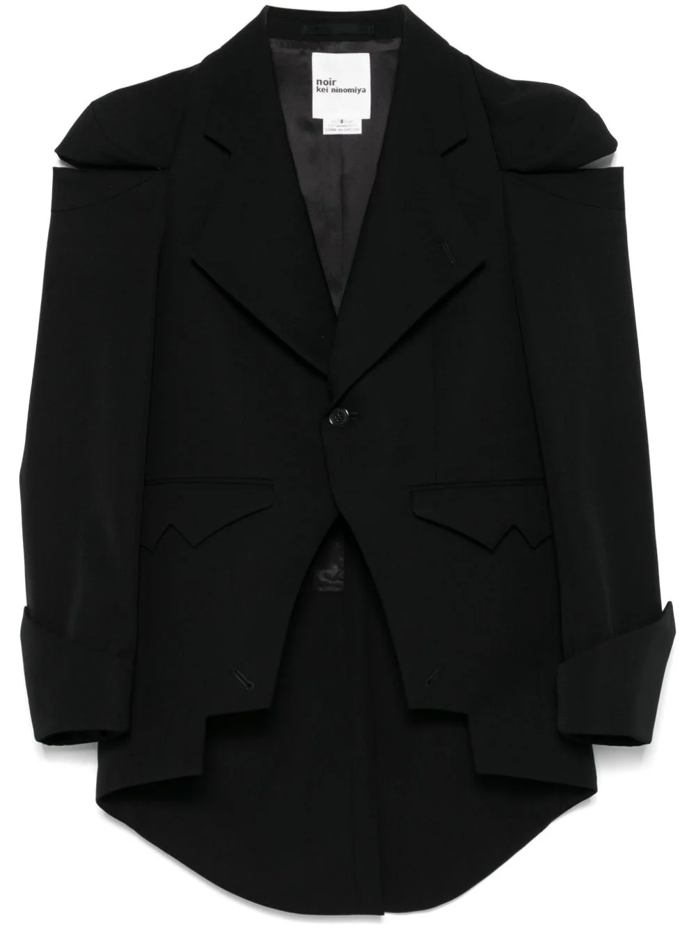 cut-out detailed jacket Highlights - Black - Front button fastening - Two side flap pockets - Central rear vent - Long sleeves Imported Composition Outer: Wool 100% Lining: Polyester 100%, Cupro 100% SIZE & FIT Model measurements Height 5 ft 10 in(1.77 m) Bust/Chest 32.28 in(82 cm) Hips 35.03 in(89 cm) Waist 25.19 in(64 cm) FittingInformation Designed for a slim fit that sits just away from the body offering a close yet comfortable fit The vented hem offers movement at the rear Made from a midweight non-stretch fabric Washing instructions Dry Clean Only