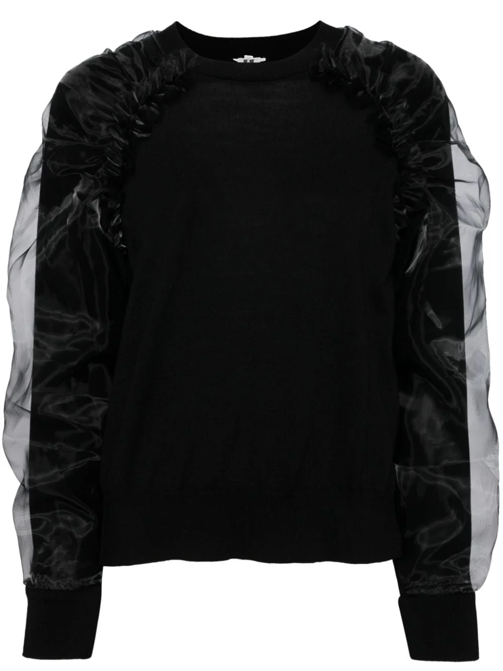 cut-out detailing jumper Highlights - Black - Wool - Organza - Knitted construction - Cut-out detailing - Ribbed cuffs and hem - Crew neck - Long sleeves Imported Composition Lining: Polyester 100% Outer: Wool 100% SIZE & FIT Model measurements Height 5 ft 9 in(1.76 m) Bust/Chest 31.1 in(79 cm) Hips 35.03 in(89 cm) Waist 24.4 in(62 cm) FittingInformation Designed for a relaxed fit, this piece allows for comfort and movement when worn Made with a lightweight knit, this piece offers some stretch