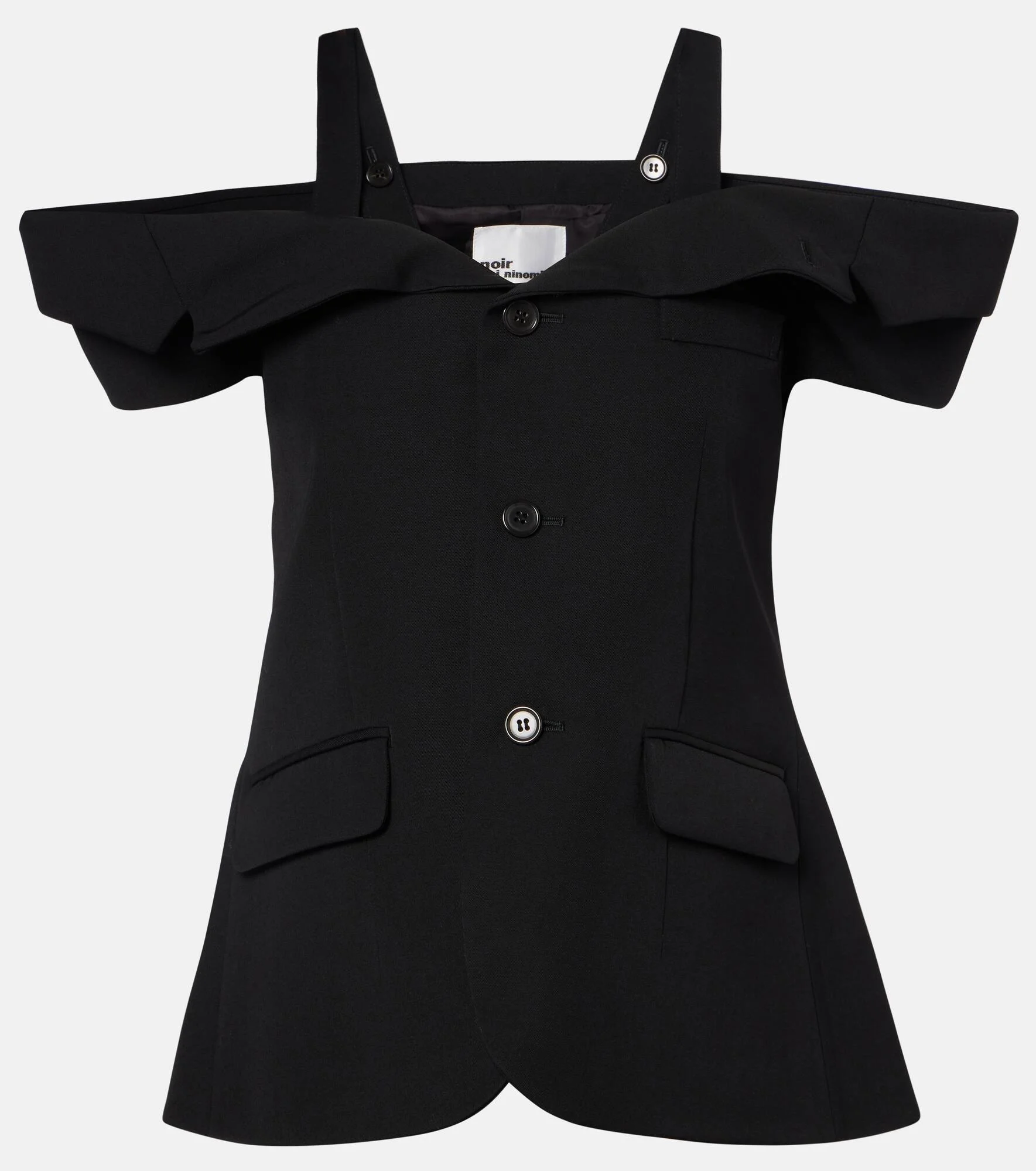 A mastery of structure is evident throughout Noir Kei Ninomiya’s collections. Case in point, this blazer-inspired top is crafted from pure wool into a single-breasted A-line silhouette with cutout sleeves and adjustable straps. Product Details - Material: 100% wool - Care instructions: dry clean - Made in Japan - Designer color name: Black - Item color: black - Lining: 100% cupro - Adjustable shoulder straps - Closure: single-breasted (three buttons) - Pockets: flap pockets - Item number: P01100417 Size & Fit - Fits large to size - we recommend trying one size smaller - Cinched waist - Non-stretchy fabric - Falls to the hip - The model seen in the picture is 178cm-5'10" and wearing a size XS