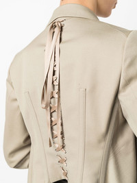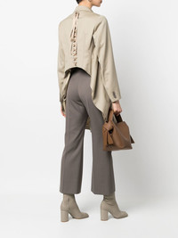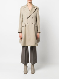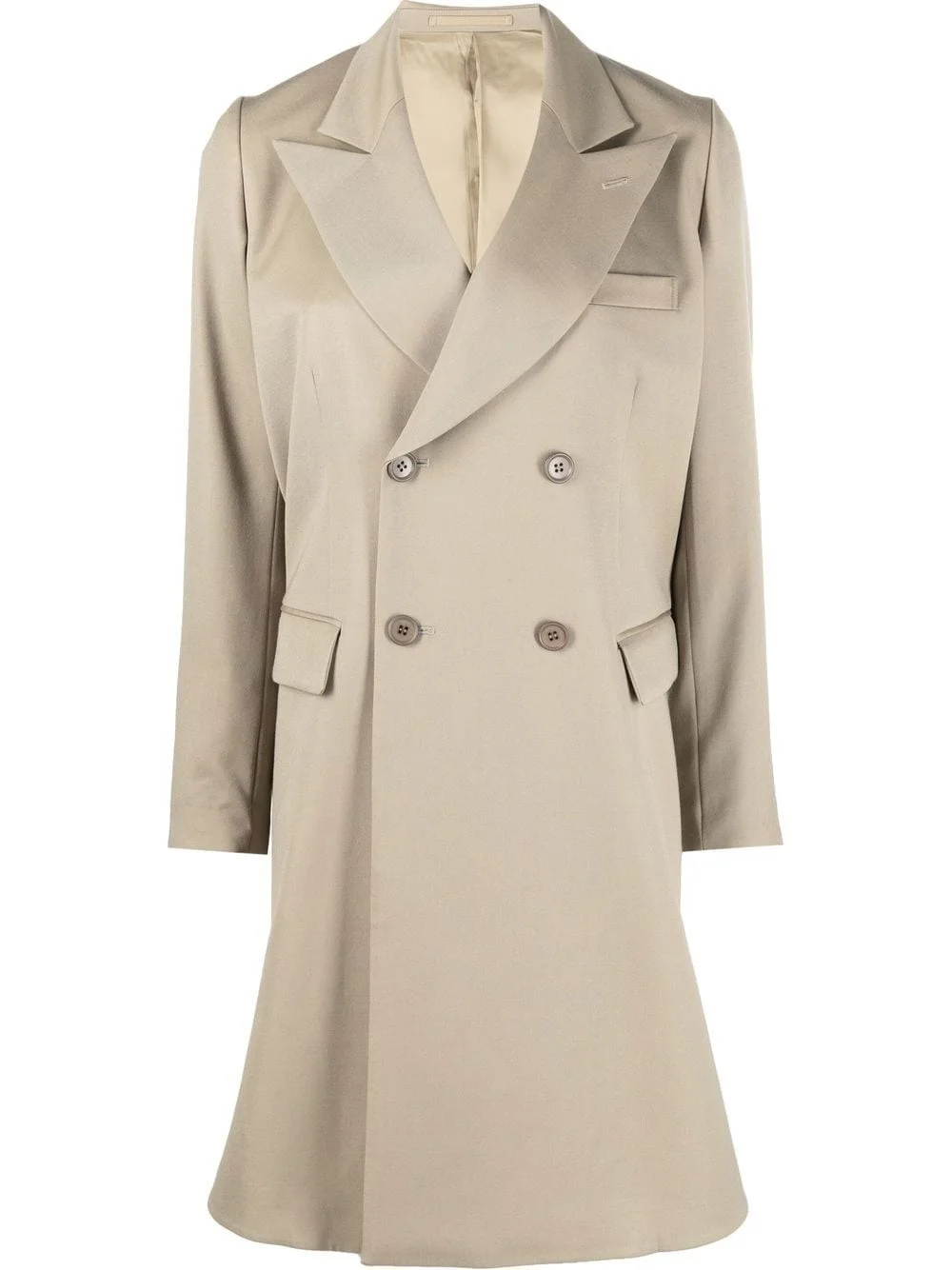 double-breasted high-low coat beige wool asymmetric design double-breasted button fastening peak lapels two front flap pockets long sleeves buttoned cuffs rear lace-up fastening Imported Composition Outer: Wool 100% Lining: Cupro 100% SIZE & FIT Model measurements Height 5 ft 11 in(1.8 m) Bust/Chest 31.49 in(80 cm) Hips 35.43 in(90 cm) Waist 24.4 in(62 cm) FittingInformation This piece fits true to size. We recommend you get your regular size Cut for a loose fit Made with a mid-weight non-stretch fabric Washing instructions Dry Clean Only