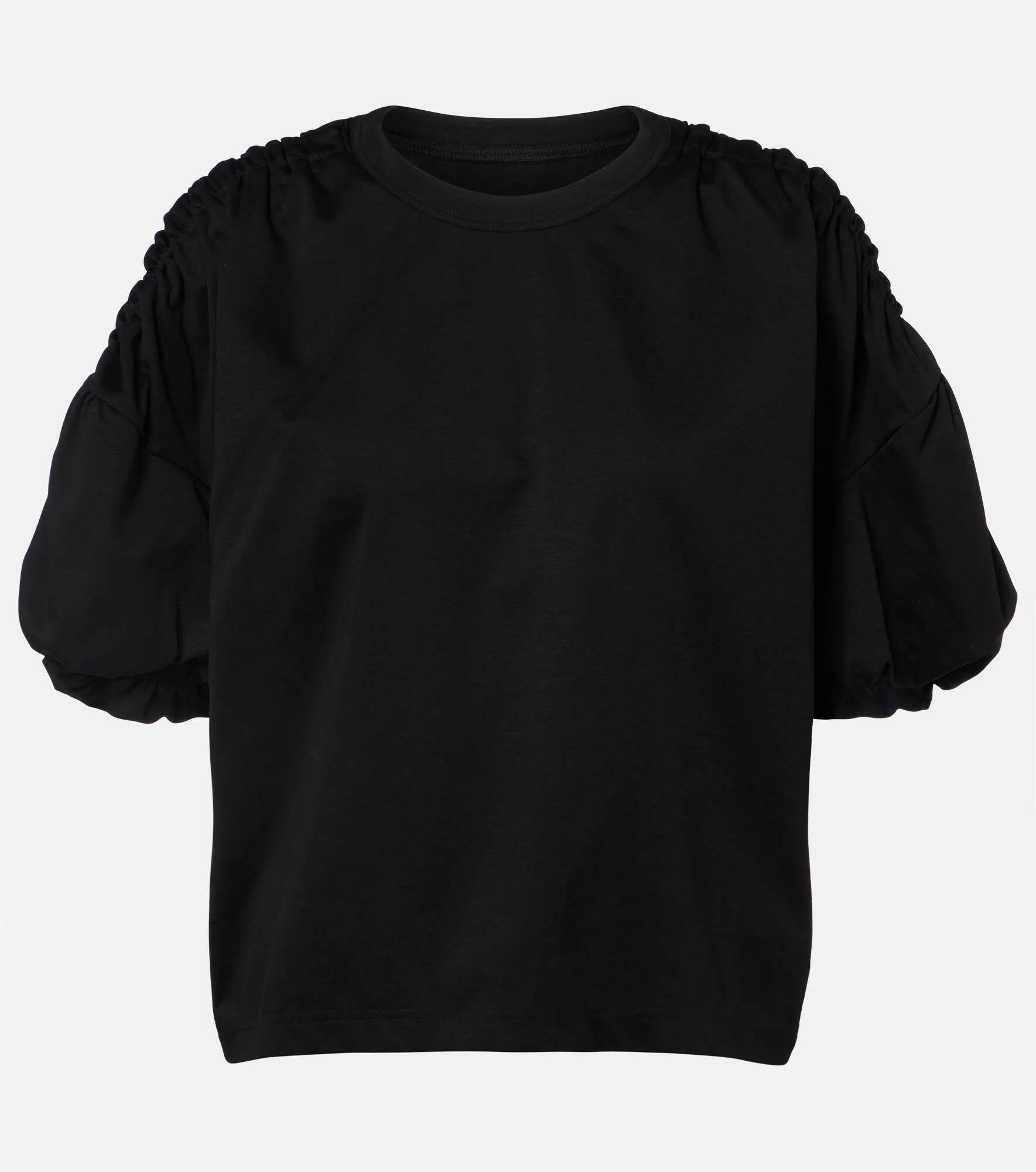 A mastery of structure is evident throughout Noir Kei Ninomiya’s collections. Crafted from pure cotton jersey, this distinct T-shirt features artful gathering at the shoulders and sleeves. Product Details - Material: 100% cotton - Care instructions: hand wash - Made in Japan - Designer color name: Black - Item color: black - Collar: crewneck - Item number: P01100419 Size & Fit - True to size - Dropped shoulders - Designed for a loose fit - Slightly stretchy fabric - Falls to the hip - The model seen in the picture is 178cm-5'10" and wearing a size XS