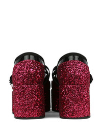 glittered platform loafers These pink and black glittered loafers from Noir Kei Ninomiya echo the brand’s punk inspiration. They’re grounded atop chunky platform soles and finished with three bow-embellished front straps. Highlights - Hot pink - Black - Patent finish - Glitter detailing - Bow detailing - Almond toe - Block heel Imported Composition Leather 100%