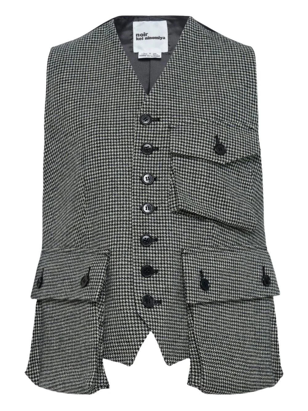 check-pattern pocket vest Highlights - Black and grey - Check-pattern - Button-fastening - Three cargo-pockets - V-neck - Sleeveless - Scalloped hem Imported Composition Fabric 100% Washing instructions Read Manufacturer Guidelines