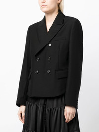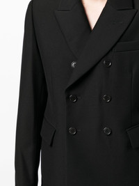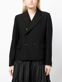 lace-up double-breasted blazer Highlights - Black - Wool blend - Rear lace-up fastening - Double-breasted button fastening - Chest welt pocket - Front flap pockets - Peak lapels - Long sleeves - Straight hem Imported Composition Wool 88%, Mohair 12% SIZE & FIT Model measurements Height 5 ft 9 in(1.76 m) Bust/Chest 31.1 in(79 cm) Hips 35.03 in(89 cm) Waist 24.4 in(62 cm) FittingInformation Designed for a slim fit that sits just away from the body offering a close yet comfortable fit Made from a midweight non-stretch fabric This piece fits true to size – take your usual size Washing instructions Dry Clean Only